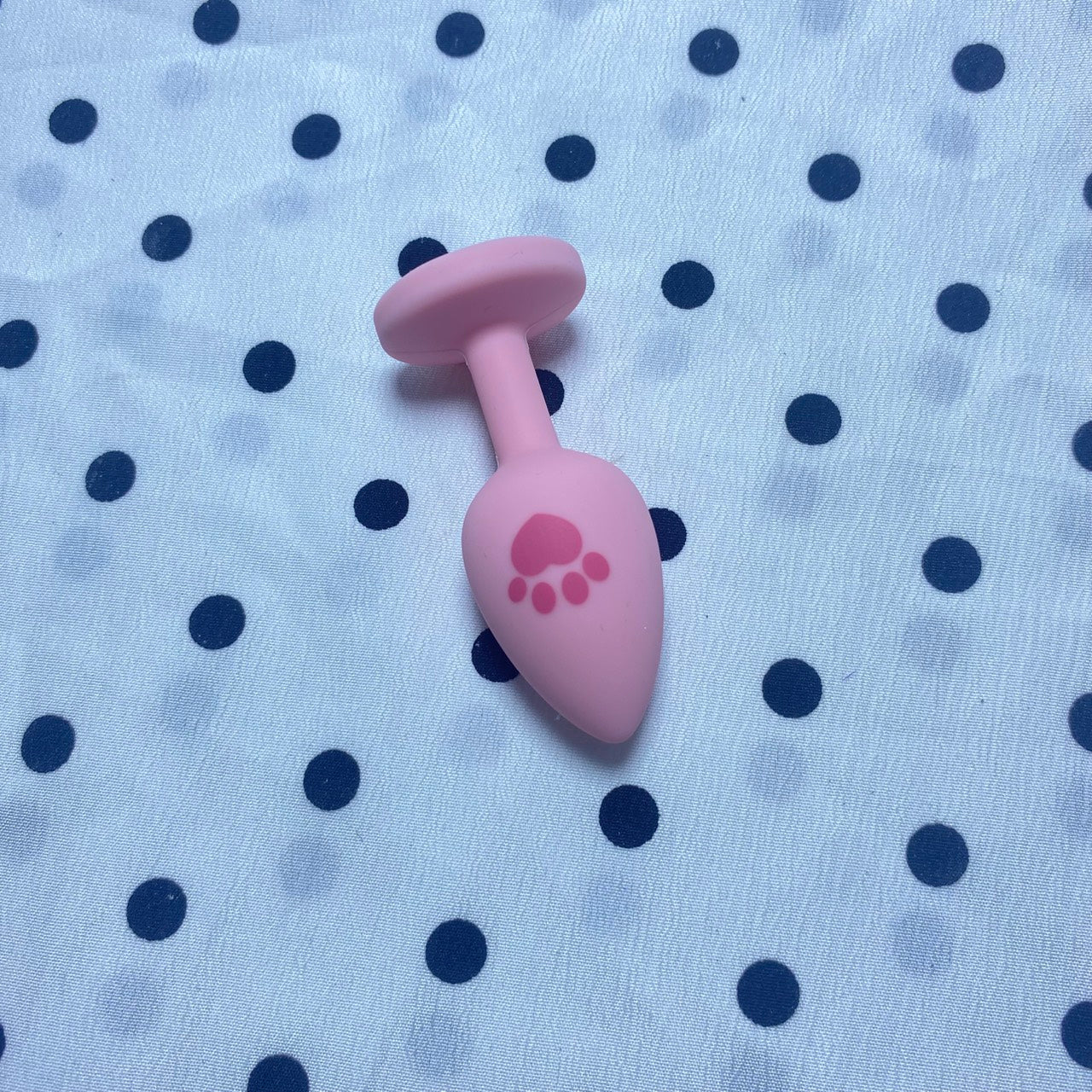ปลั๊กทวารหนักซิลิโคนสีชมพูพรีเมียมพร้อมลายอุ้งเท้าแมวน่ารักและประดับเพชรสวยงาม